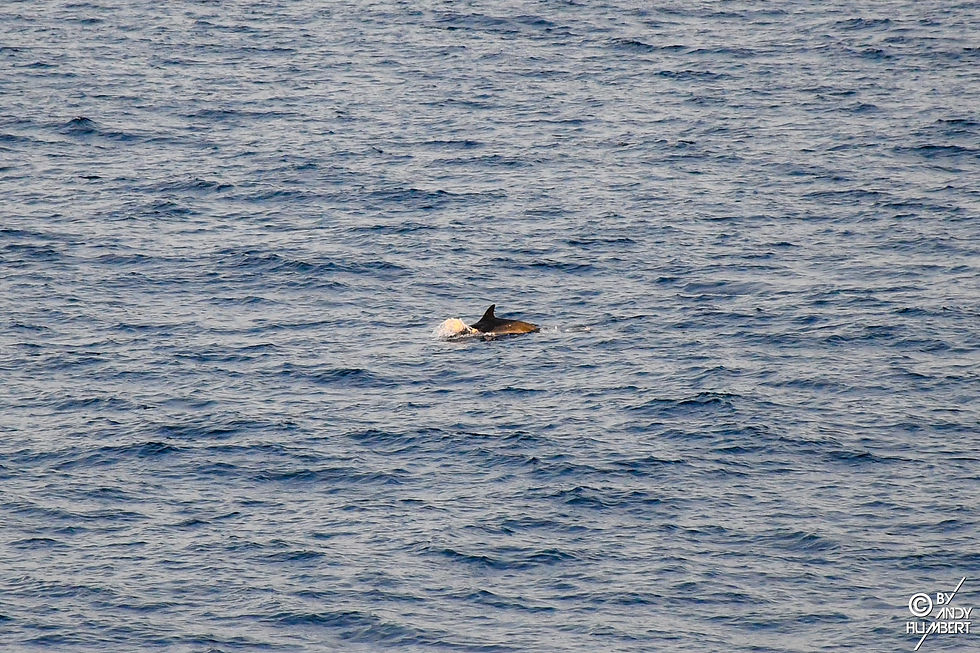 Nous avons la chance d'apercevoir quelques dauphins, alors que le soleil se couche, derrière les nuages.