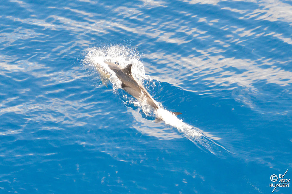 Quelques instants plus tard, quelques dauphins viennent faire de superbes sauts ! Nous assistons à un spectacle exceptionnel, la mer des Açores ne trahit pas sa réputation !